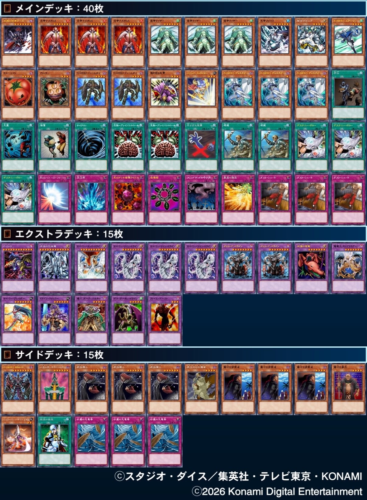| デッキ分布 | 水晶帝3 ガジェット3 バーン3 アンデット2 オーシャンビート2 デステニーライダー デステニー帝 推理ゲート ビートダウン 墓守 フロフレホルス 未来融合カオスソルジャー |